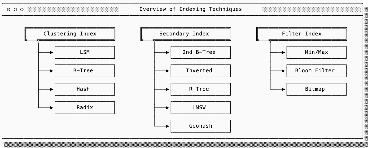 I reference the RUM conjecture when evaluating indexes. This grounds the discussion with the understanding that a single index structure cannot be optimized for read, update AND memory overhead simultaneously. In other words, indexes tradeoff across read, write and space amplification to improve performance of reads, updates or memory utilization.
