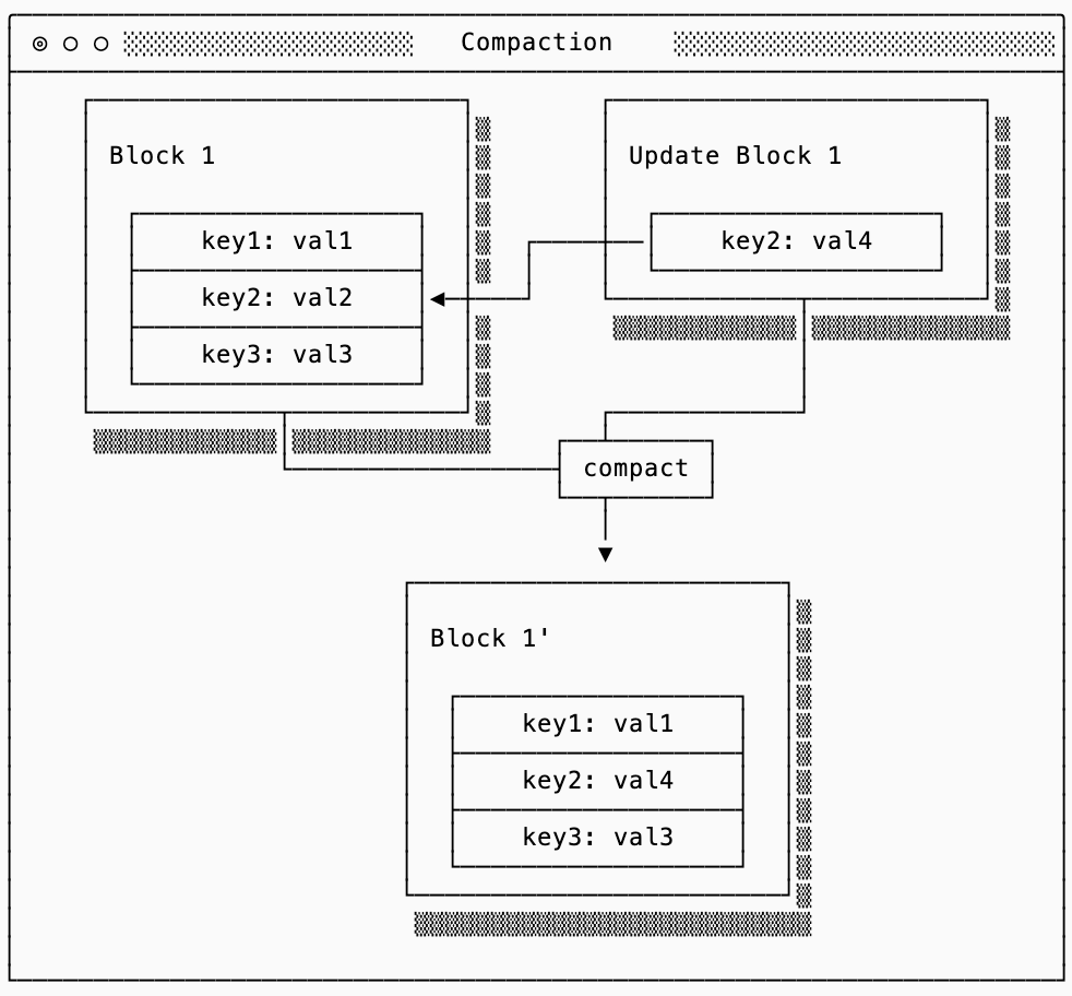Compaction and garbage collection (GC) are common strategies for reducing write amplification in favor of read/space amplification. A data system can only write a single block at a time, which means that if the contents of that block are modified it is no longer entirely valid. Since rewriting a block in-place may be impossible due to fragmentation, the strategy most systems use are to append new blocks that model updates to the old blocks.