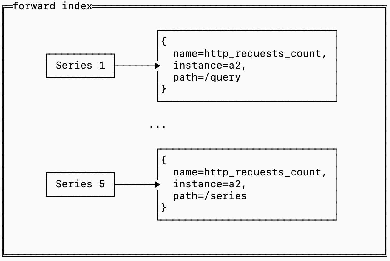 A forward index determines which series need to be aggregated together