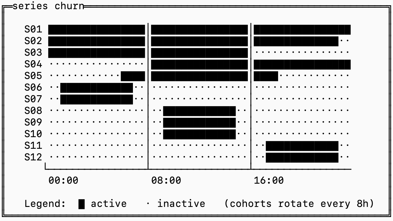 The ██ represents series with data during that time and a . represents series with no data at that time.