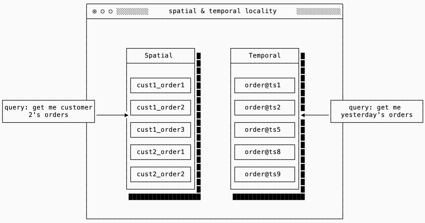 This is why designing the key for your database is so important. It is the first attempt to make sure that you can take advantage of the spatial locality of the data on disk.