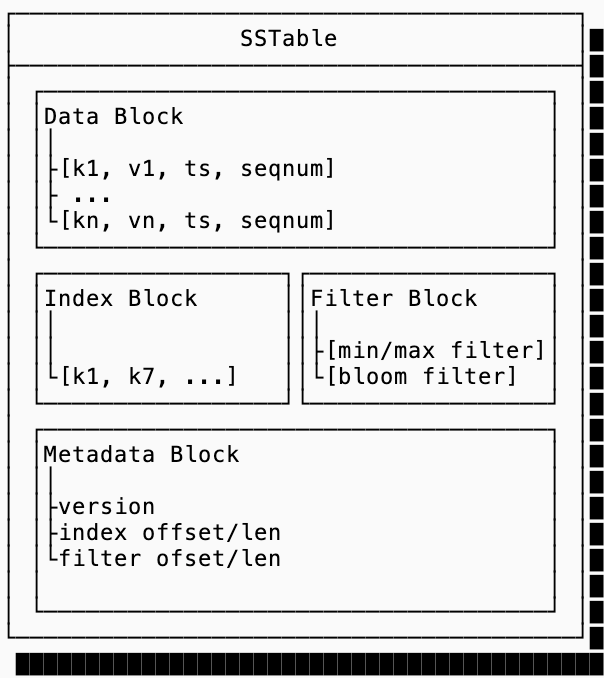 This blog is about how data is laid out on disk, specifically about the details of Sorted String Tables (SSTs). Let’s cut to the chase.